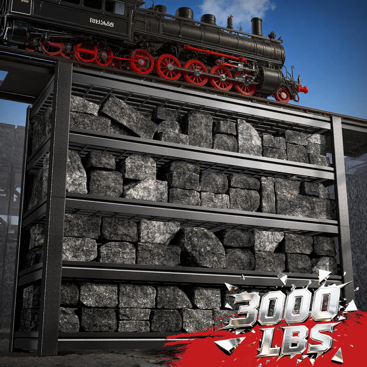 • 【Double Layer Upright Design and Heavy Duty Reinforced Metal Construction‌】This garage shelving features a double-layer upright design, that are wider and thicker than ordinary shelves. Each tier includes added support rods, delivering a 600 lbs per shelf capacity and a total load capacity of 3000 lbs. This industrial-grade build ensures maximum stability and safety for heaviest tools and equipment, providing complete peace of mind