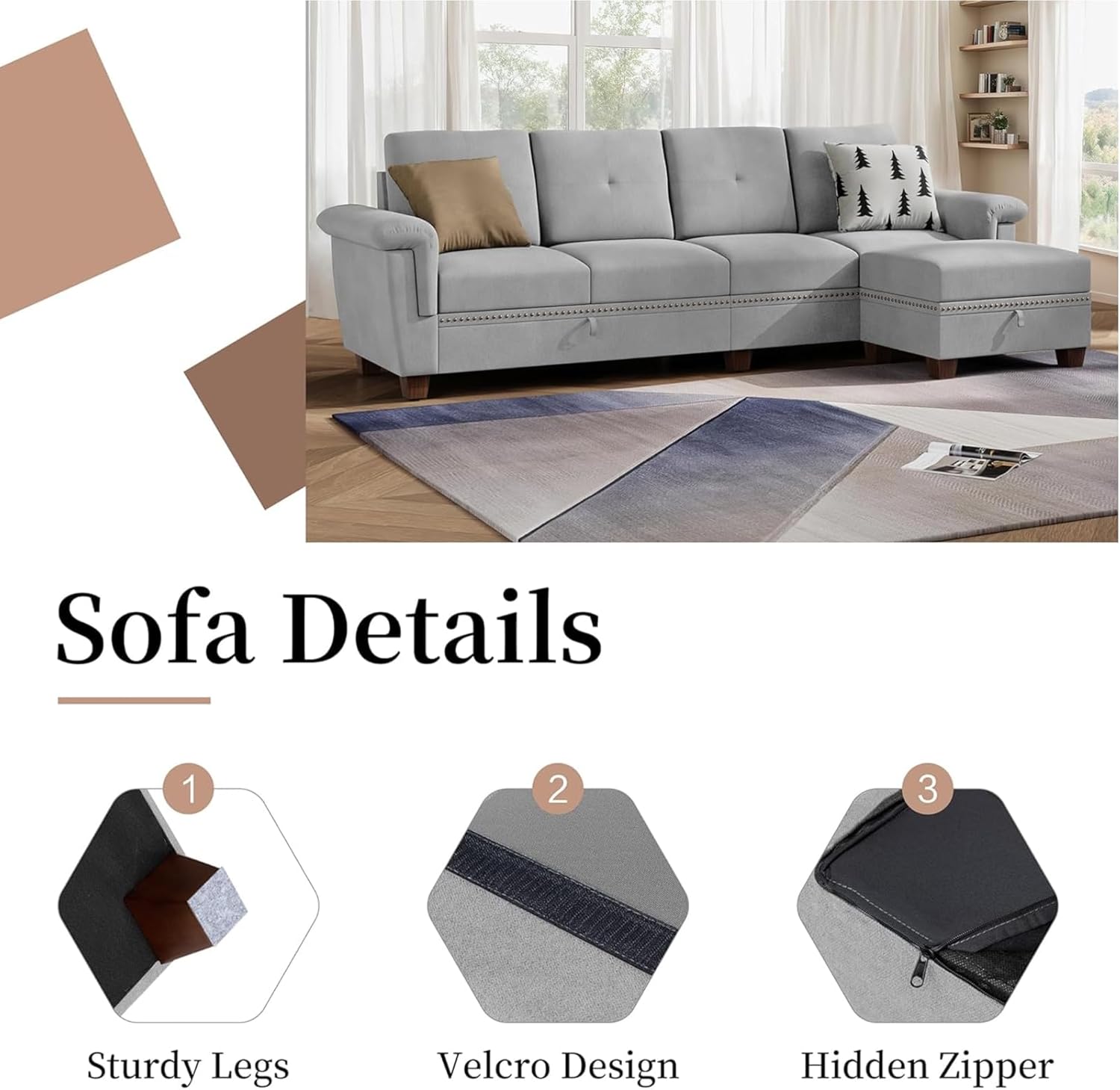 • Built-in Storage Chaise: Hidden storage under the chaise lets you neatly organize blankets, pillows, and remotes, keeping your living space clutter-free and always guest-ready
