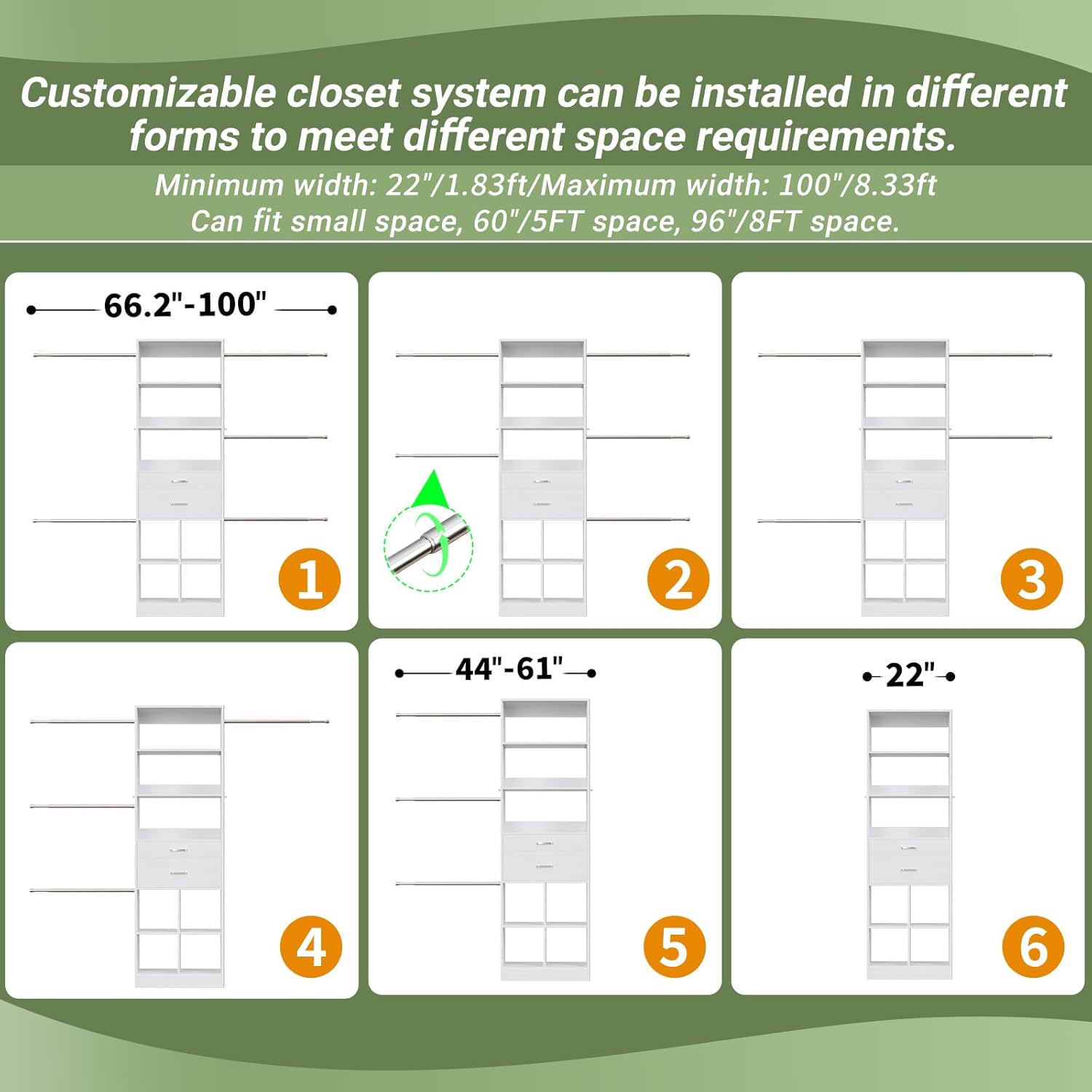 • 【Compatible with 5FT/8FT Closet Spaces】Whether for a compact 5FT area or a spacious 8FT walk-in closet, this organizer fits seamlessly. Anti-tip kits are included for added safety and peace of mind