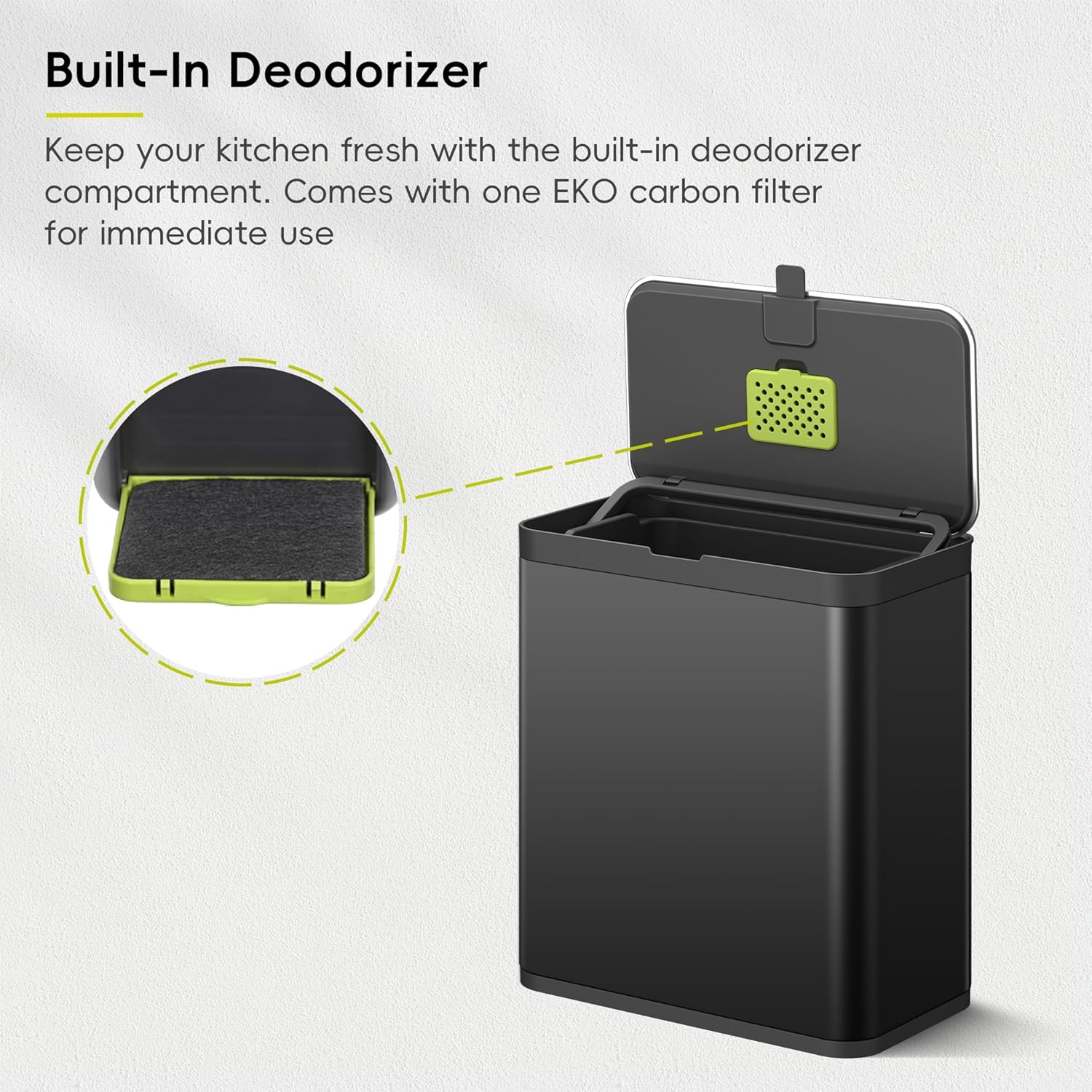 EKO Kitchen Compost Bin, 7L / 1.85 Gal Stainless Steel with Removable Inner Bucket and Deodorizer Compartment, 2-in-1 Countertop Compost Bin with Lid, Food Waste Caddy for Kitchen (Matte Black)