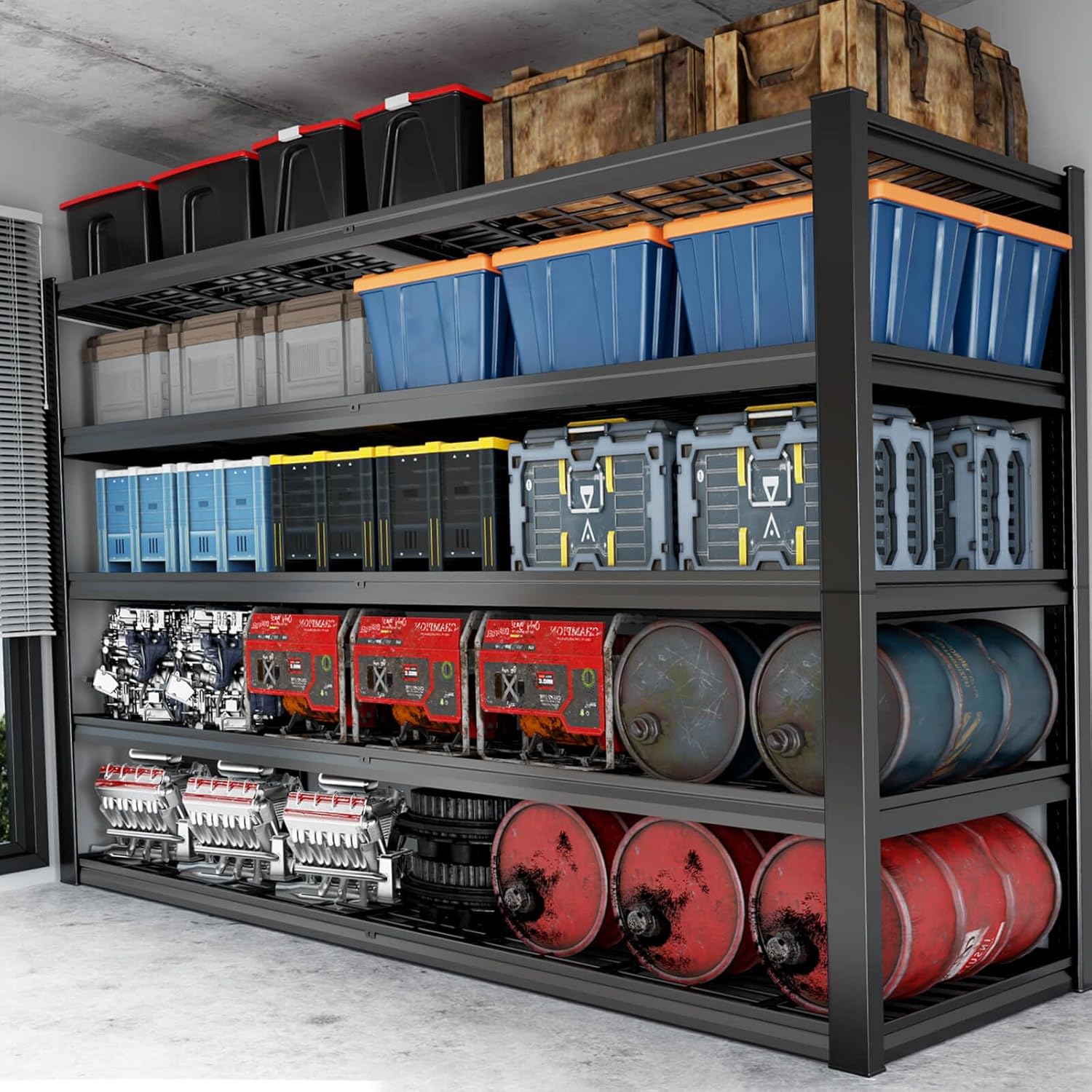 • 【Adjustable Heavy Duty Metal Shelves to Meet Different Needs】The height of each tier can be adjusted not only by moving the crossbar to meet the needs of different heights, but also the shelves can be assembled or disassembled into a variety of different metal shelves. The 84-inch tall 3500 lb. load-bearing garage shelves are not only strong, but they also give you more storage space.