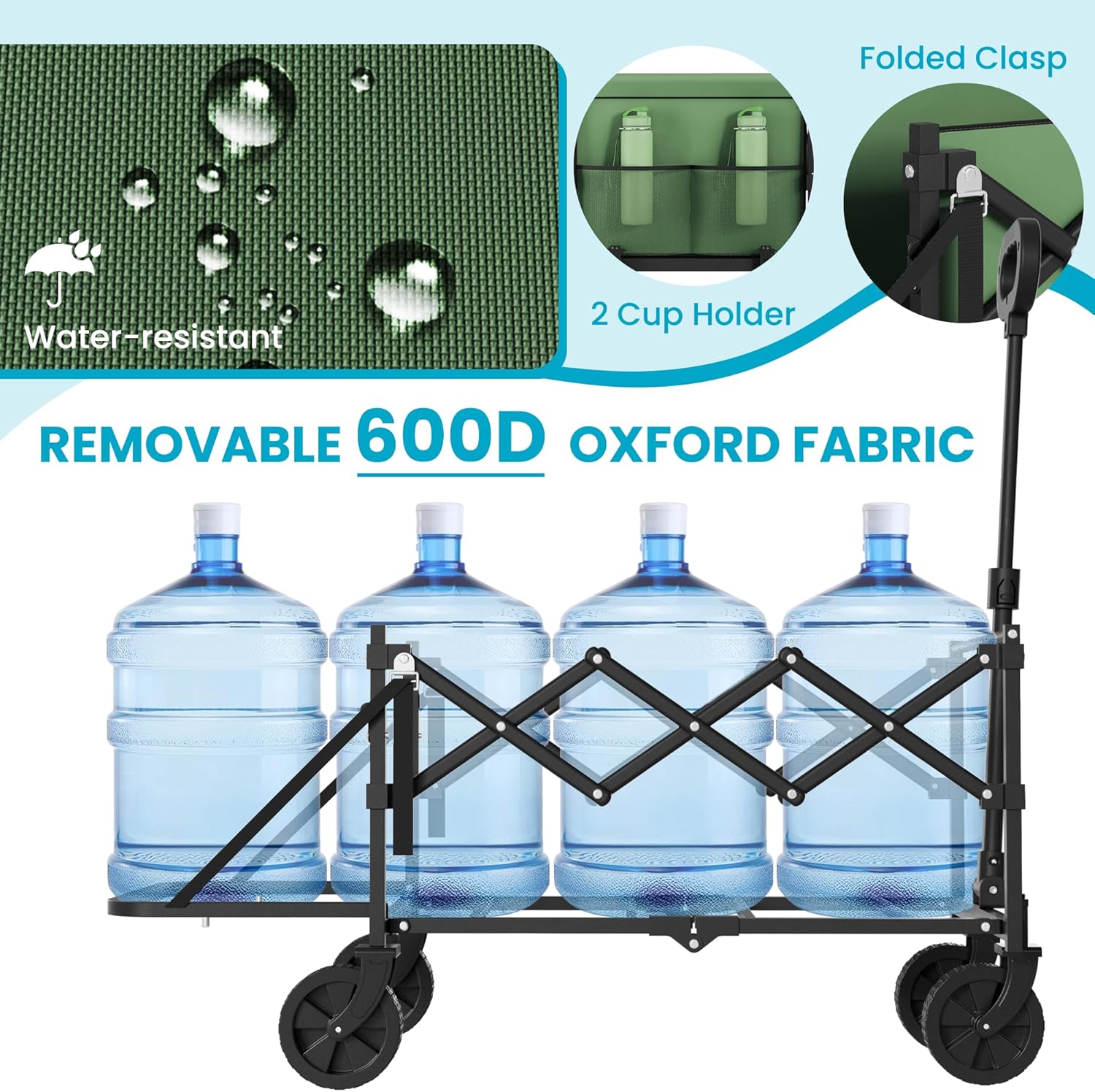 • 【350LBS Load Capacity】Featuring a double-crossing, robust frame, it boasts an impressive load capacity of up to 350lbs. The 600D Oxford fabric is both wear-resistant and waterproof, plus it’s easy to disassemble and clean. Whether you’re traveling or transporting parcels, this wagon is a reliable companion that’s built to go the distance.